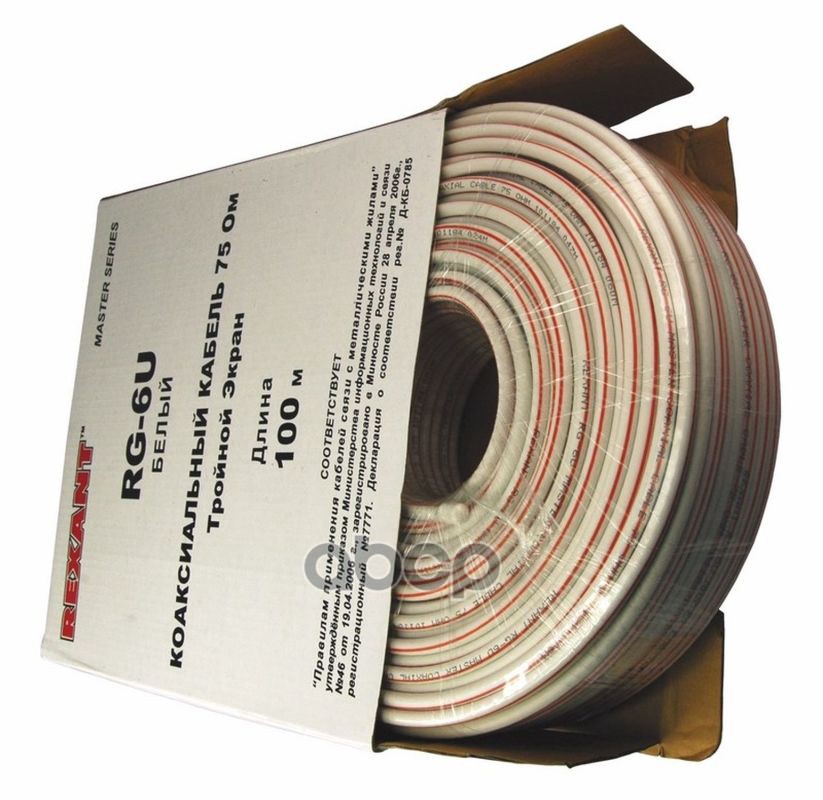 Наименование: REXANT Кабель коаксиальный RG-6U Cu, 75 Ом, Cu Al Cu Al, 90 , две фольги, бухта