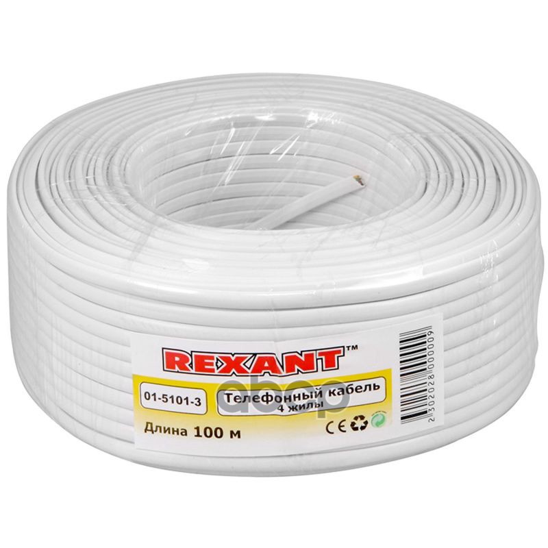 Купить запчасть 0151013 REXANT Телефонный кабель ШТЛП 4 жилы CCA, белый, бухта 100 м 01-5101-3 с доставкой в Эль-Монте.