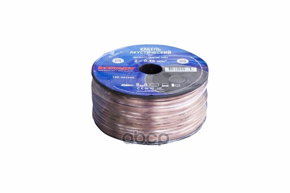 Наименование: Кабель акустический 2х0,35мм , прозрачный BLUELINE, 100м REXANT