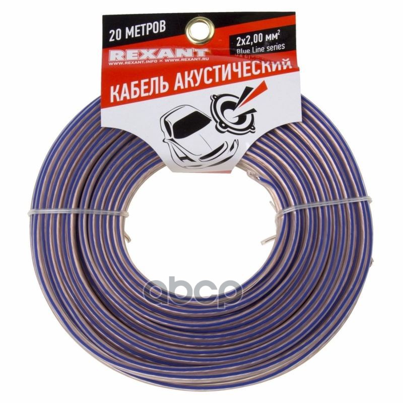 Наименование: Кабель акустический 2х2,00мм , прозрачный BLUELINE, мини-бухта 20м REXANT