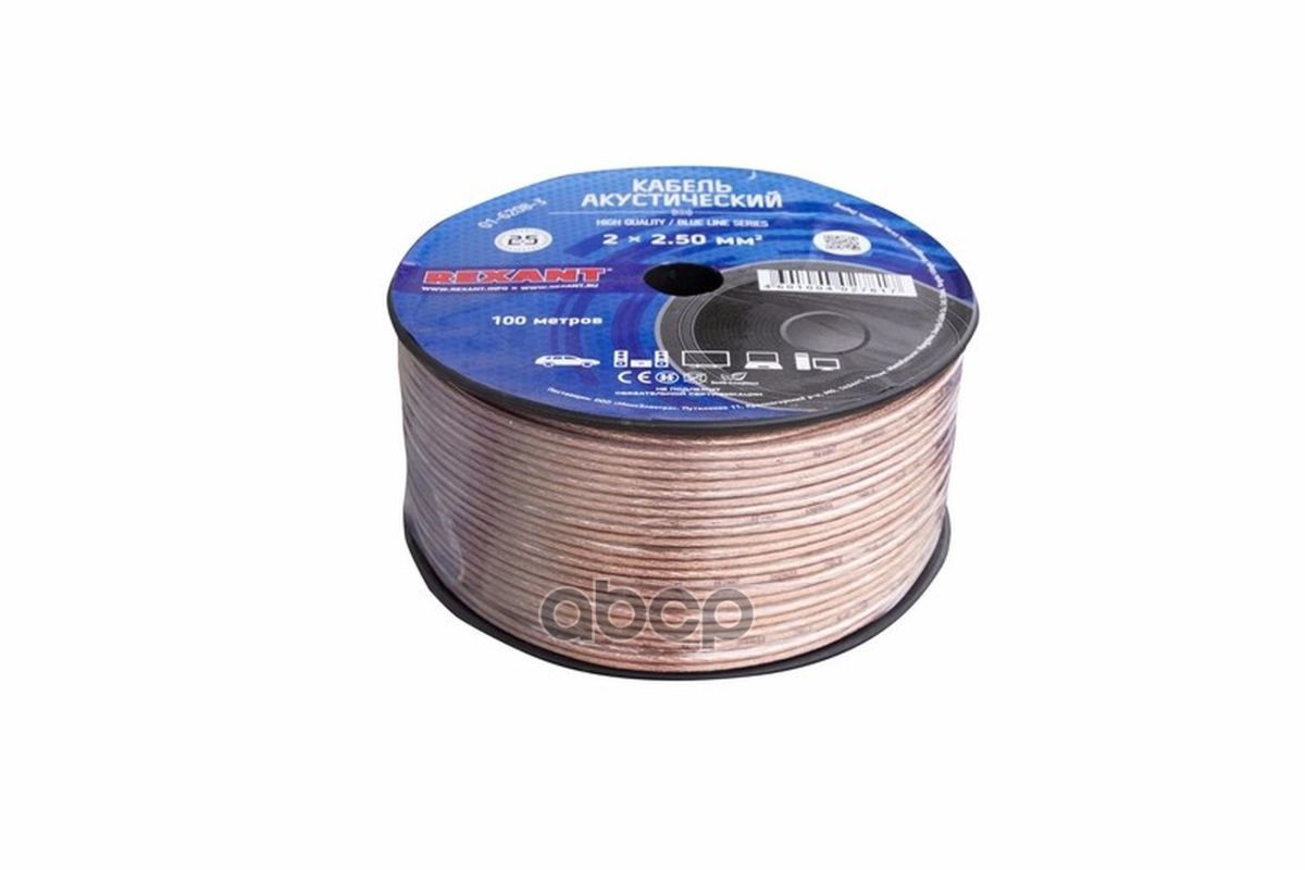 Наименование: Провод акустический Rexant 2 х 2,50 мм прозрачный Blueline 100 м