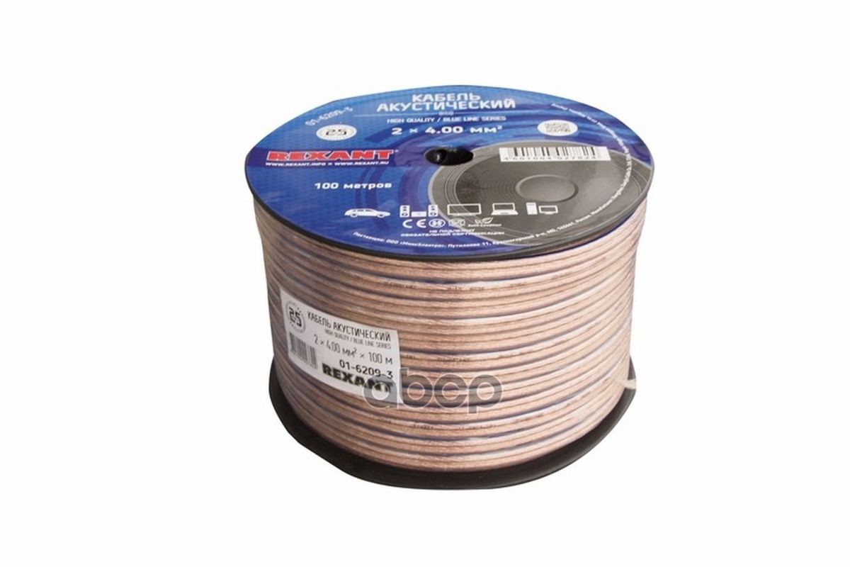 Наименование: Кабель акустический 2х4,00мм , прозрачный BLUELINE, 100м REXANT