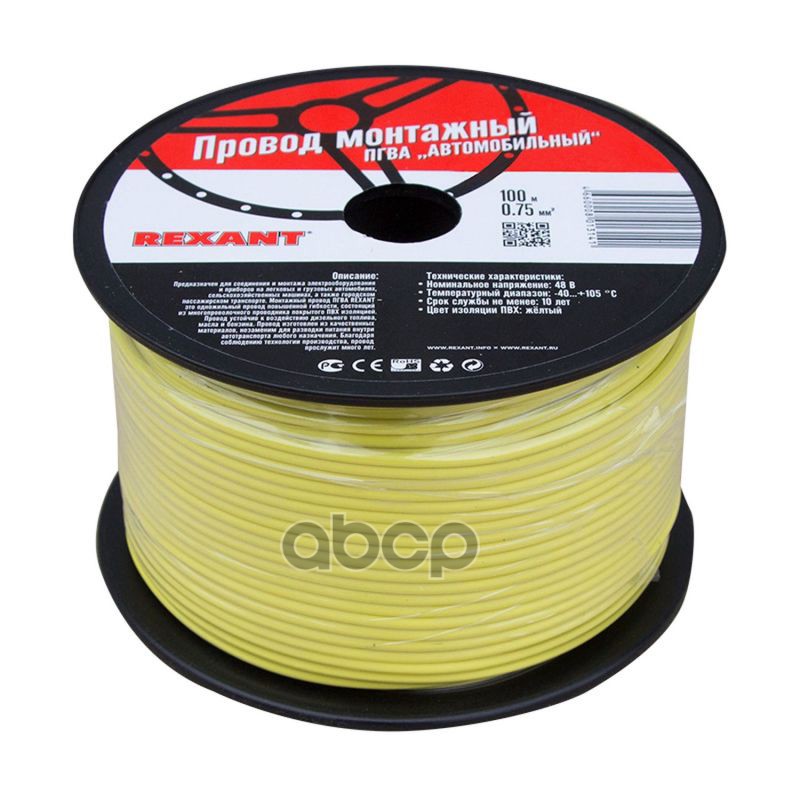 Купить запчасть 016502 провод ПГВА 1х0.75 мм квадр., желтый, бухта 100м с доставкой в Эль-Монте.