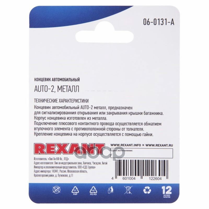 Купить запчасть 060131A Концевик REXANT автомобильный, металл REXANT с доставкой в Эль-Монте.
