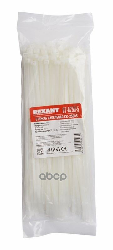 Купить запчасть 0702505 Хомуты-стяжки 250х5.0 мм REXANT кабельные нейлон (пластик) Белые min100 REXANT с доставкой в Эль-Монте.