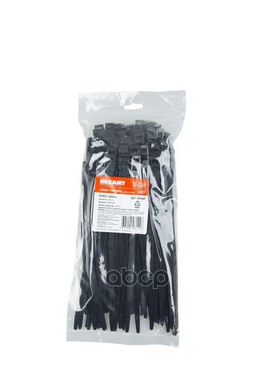 Купить запчасть 070269 REXANT Стяжка нейлоновая для СИП с горизонтальным замком 260x9,0мм, черная 100 ш с доставкой в Эль-Монте.