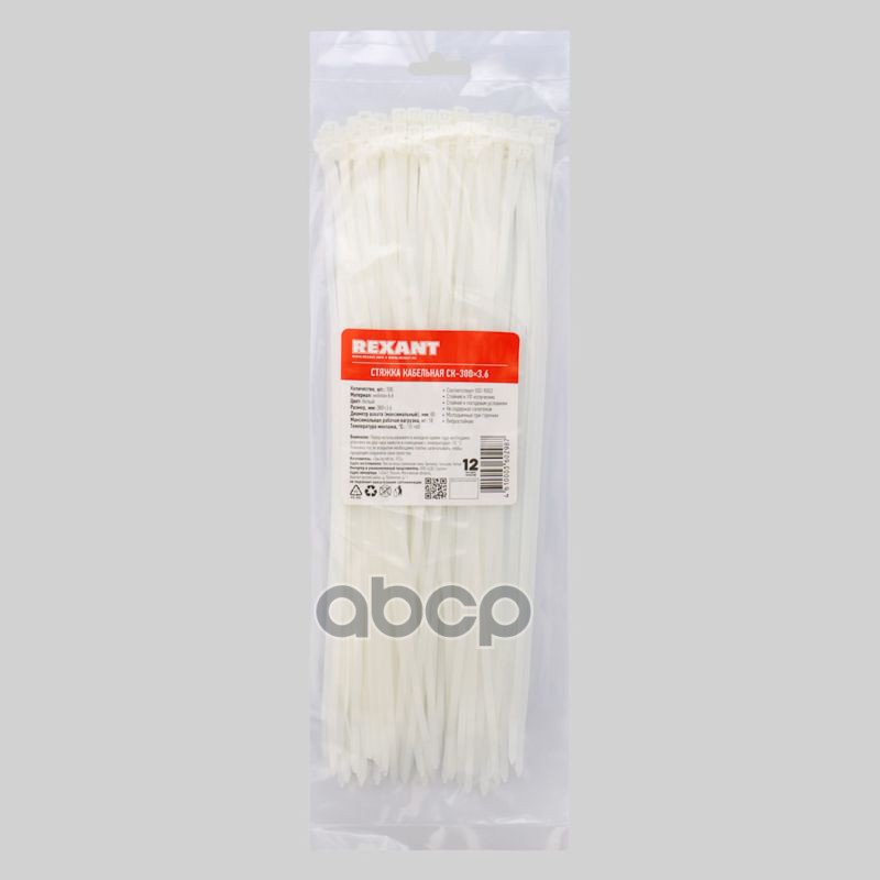 Купить запчасть 070300 хомут-стяжка кабельная нейлоновая 300x3.6мм, белый, упаковка 100шт. с доставкой в Эль-Монте.