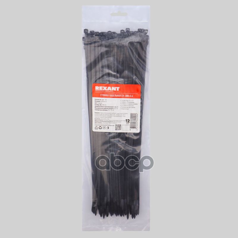 Купить запчасть 070301 Хомуты-стяжки 300х3.6 мм REXANT кабельные нейлон (пластик) Черные min100 REXANT с доставкой в Эль-Монте.
