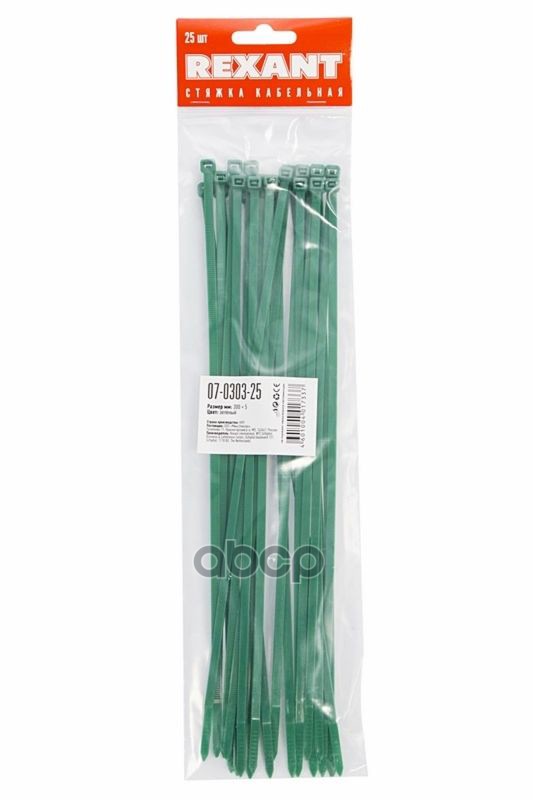Купить запчасть 07030325 Хомуты-стяжки 300х4,8 мм REXANT кабельные нейлон зеленые min25 REXANT с доставкой в Эль-Монте.