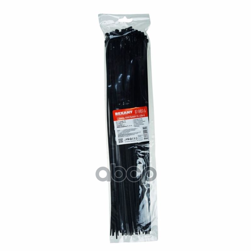 Купить запчасть 0704515 Хомуты-стяжки 450х5.0 мм REXANT кабельные нейлон (пластик) Черные min100 REXANT с доставкой в Эль-Монте.
