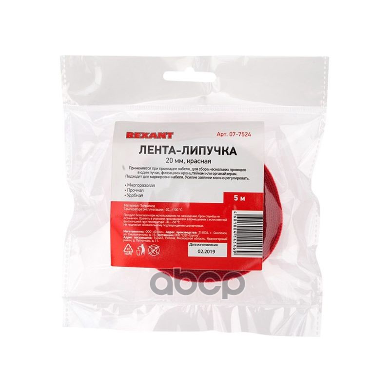 Наименование: REXANT Лента-липучка многоразовая 5 м х 20мм, красная 1 шт уп 07-7524