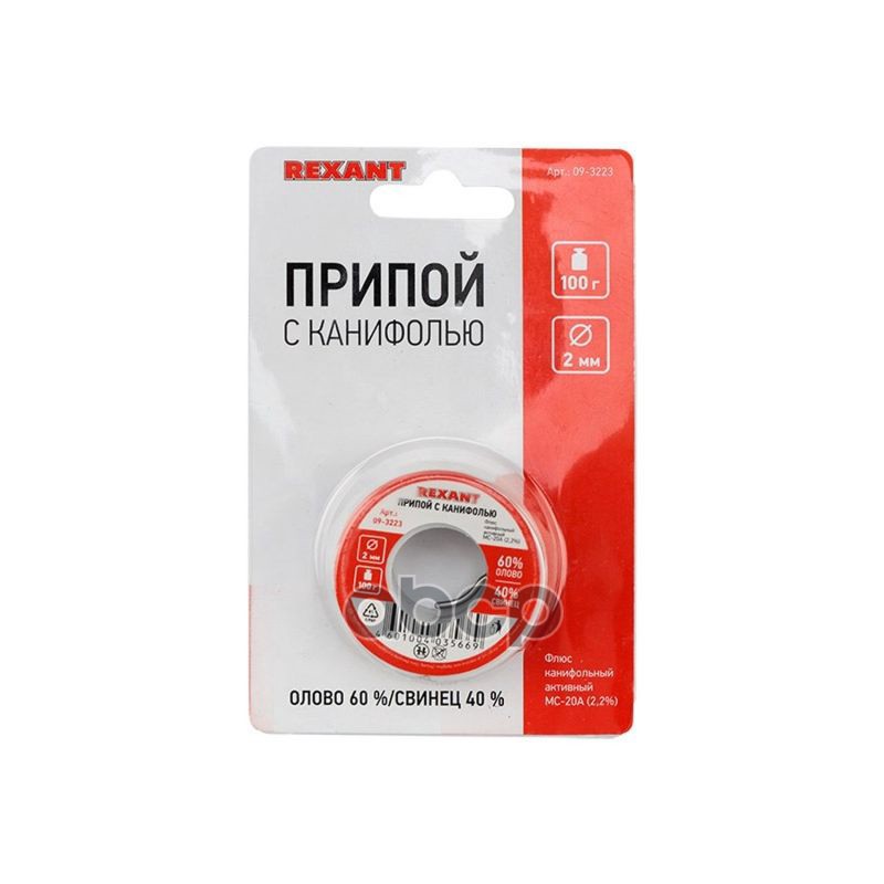 Наименование: припой с канифолью, 100 г, D2.0 мм, (олово 60%, свинец 40%), катушка, блистер