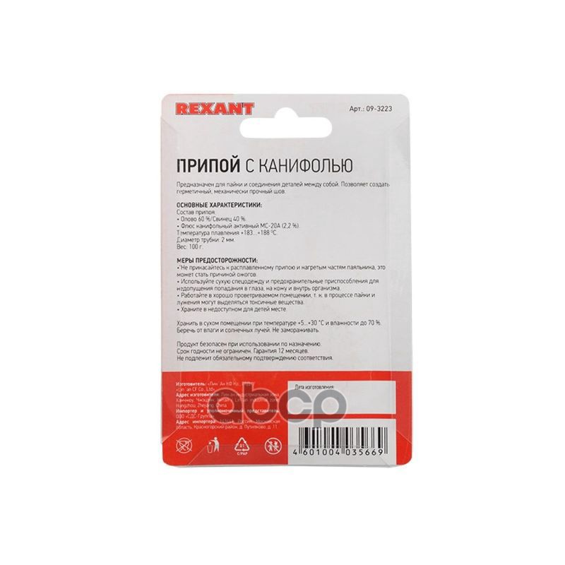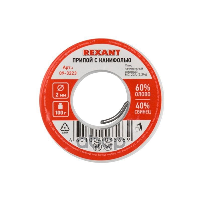 Купить запчасть 093223 припой с канифолью, 100 г, D2.0 мм, (олово 60%, свинец 40%), катушка, блистер с доставкой в Эль-Монте.