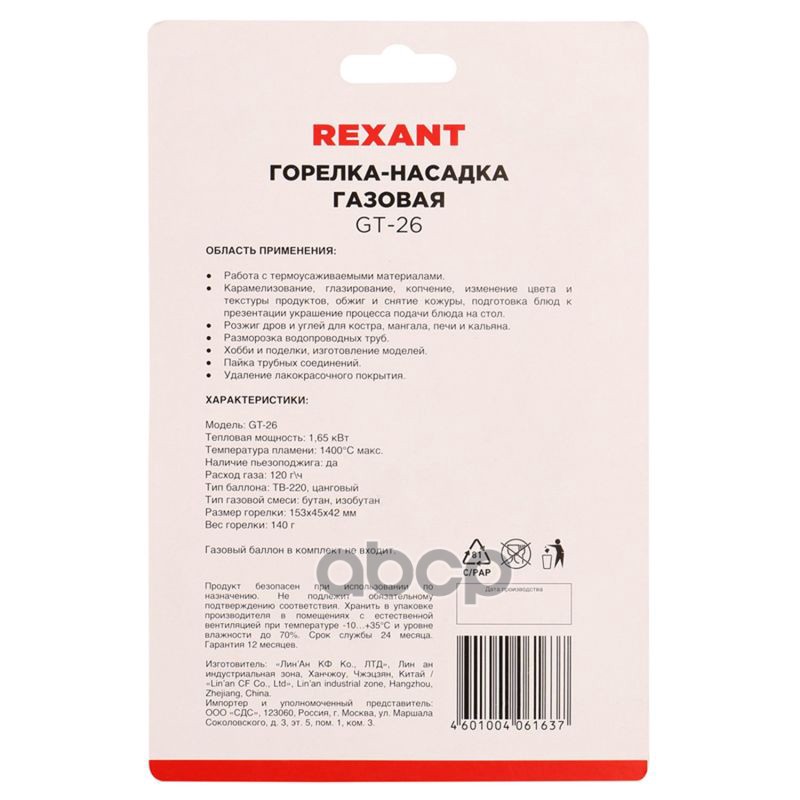 Наименование: Горелка газовая GT-26 с пьезоподжигом + керамика