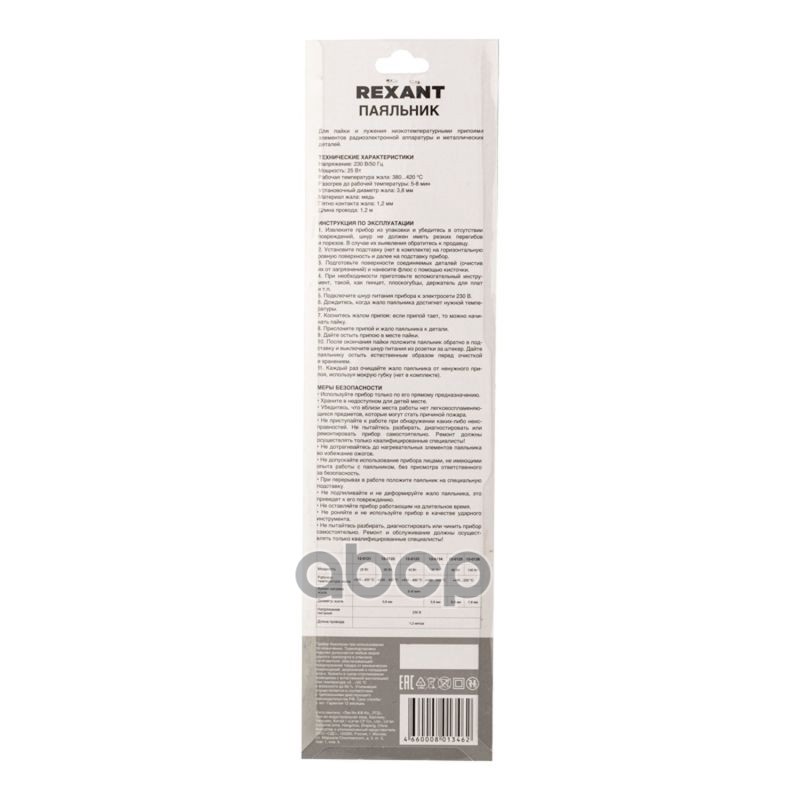 Наименование: Паяльник 230 В 25 Вт Мастер долговечное жало блистер Rexant