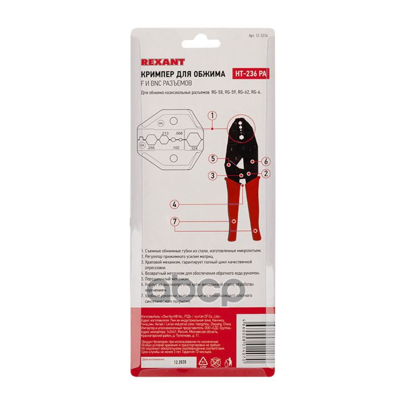 Купить запчасть 123214 REXANT Кримпер для обжима F и BNC разъемов RG-58, RG-59, RG-62, RG-6 ht-301 PA 1 с доставкой в Эль-Монте.