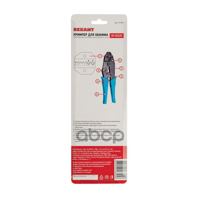 Наименование: REXANT Кримпер для обжима изолированных и штыревых наконечников 0.5 - 2.5 мм HT-