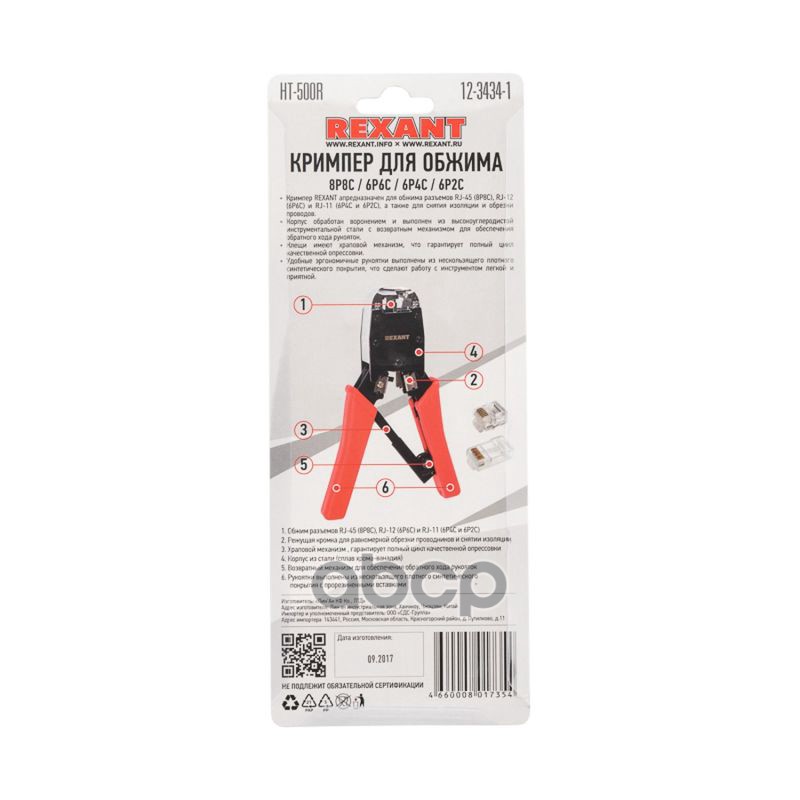 Купить запчасть 1234341 REXANT Кримпер для обжима HT-500R ТАЙВАНЬ 8P8C, 6P4C 12-3434-1 с доставкой в Эль-Монте.