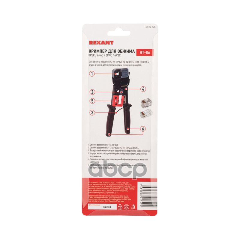Наименование: REXANT Кримпер для обжима HT-376E 8P8C, 6P6C, 6P4C, 6P2C 12-3435