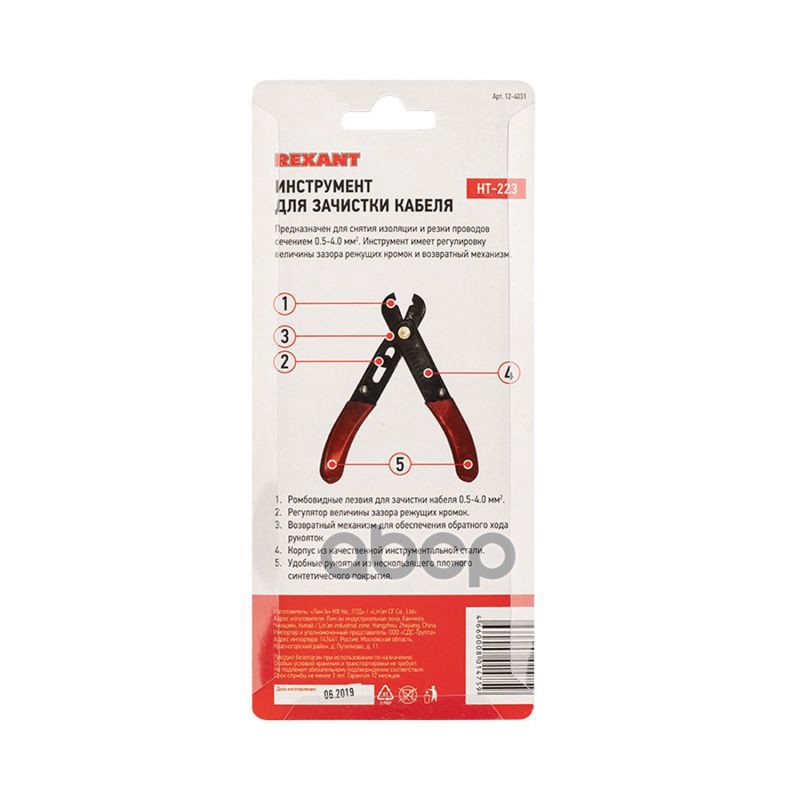 Купить запчасть 124031 REXANT Инструмент для зачистки кабеля HT-223 0.5-4.0 мм 12-4031 с доставкой в Эль-Монте.