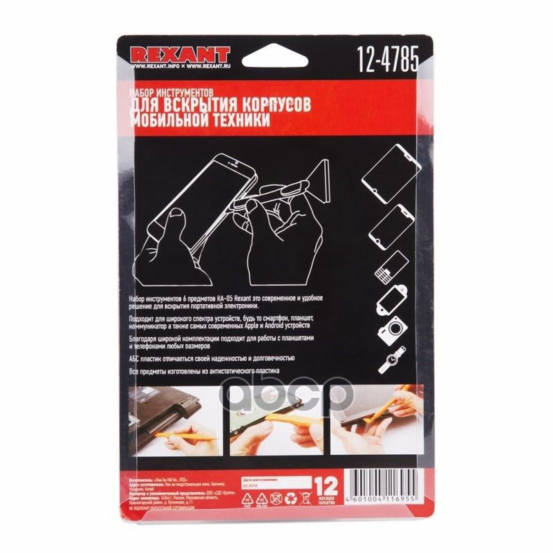 Наименование: Набор инструментов для вскрытия корпусов мобильной техники, 6 предм. RA-05 ,REXA