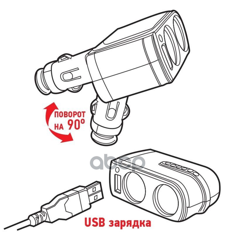 Наименование: Прикуриватель 2 гнезда 12 В USB 1А со стразами Rexant