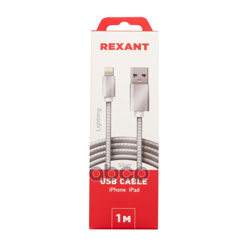 Наименование: Кабель USB-A – Lightning для Apple, 2,4А, 1м, в серебристой нейлоновой оплетке REXANT REXANT