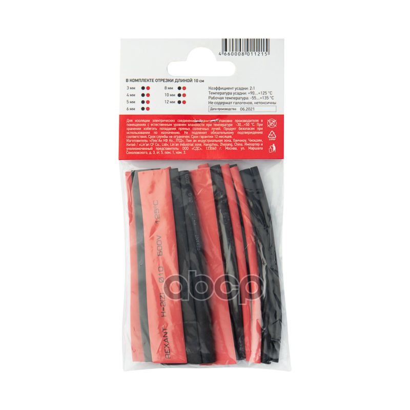 Наименование: Набор термоусадочных трубок REXANT №6 МАКСИМУМ 3,4,5,6,8,10,12ммх2шт REXANT