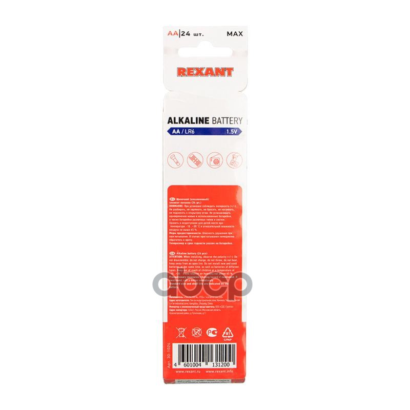 Наименование: батарейка алкалиновая АА/LR6 1,5В, 1шт (блистер 24шт)