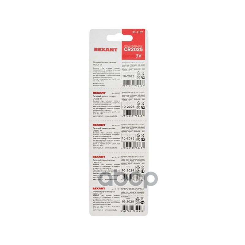 Купить запчасть 301107 батарейка литиевая CR2025, 3В, 1шт (блистер 5шт) с доставкой в Эль-Монте.