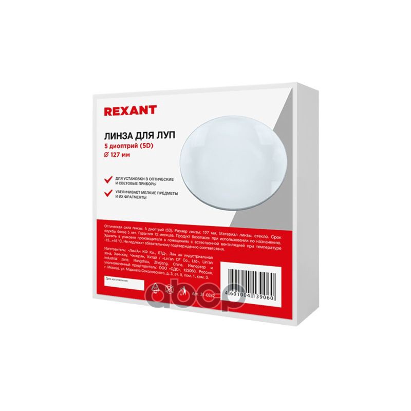 Наименование: REXANT Линза 5 диоптрий 5D, d 127 мм, для луп с подсветкой 31-0882