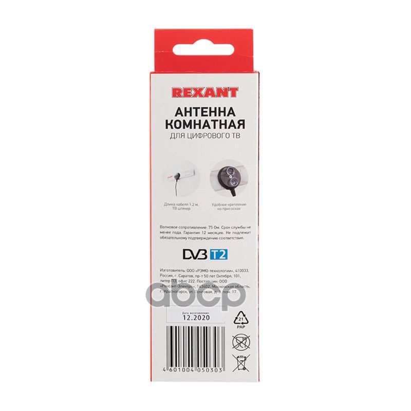 Наименование: REXANT RX-255 Антенна комнатная для цифрового телевидения DVB-T2 34-0255