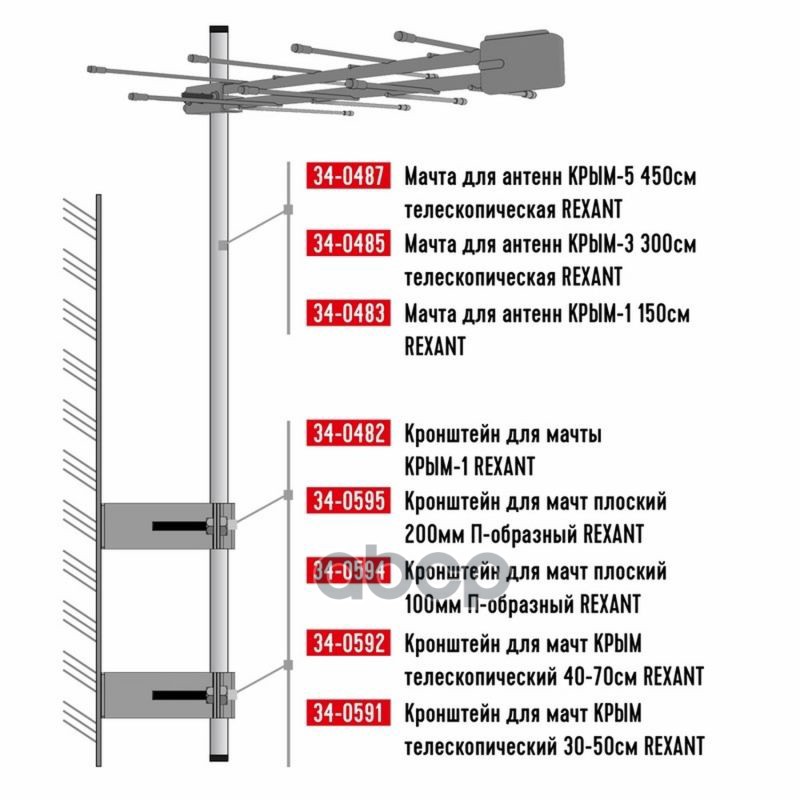 Наименование: REXANT Мачта для антенн Крым-5 450 см телескопическая 34-0487