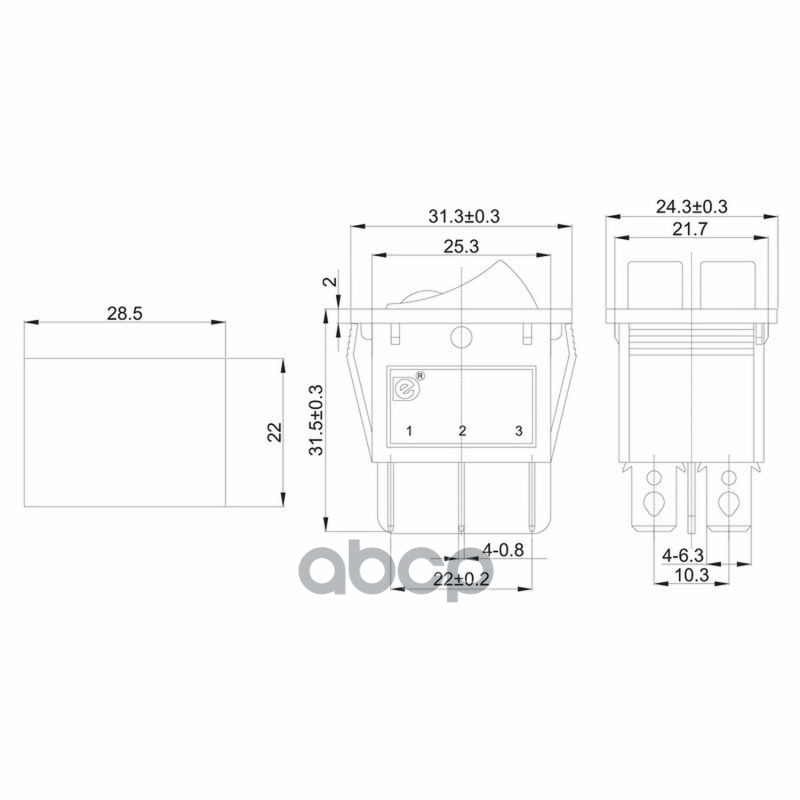 Наименование: Клавиша 250V 15А ON-OFF 6с черный с подсветкой, двойной, REXANT