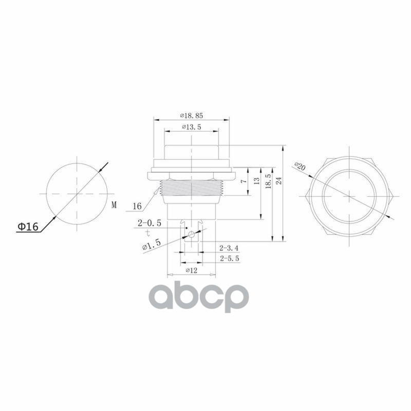 Наименование: ВК кнопка ON-OFF 2-х поз. 220В-2А 2с черная d16.2 REXANT металл блистер