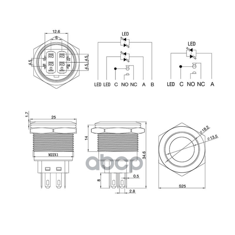 Наименование: REXANT Кнопка антивандальная 22 12в(led) б фикс (5с) off-(on) on-(off) подсв син
