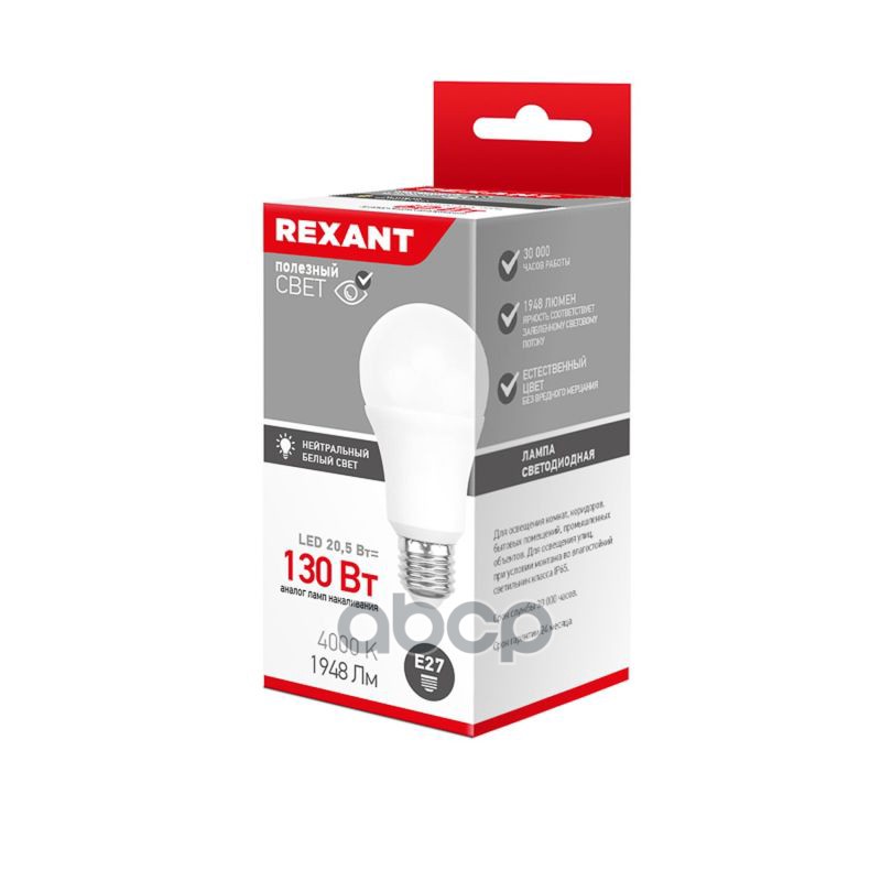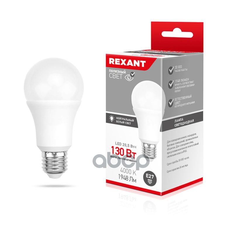 Наименование: Лампа светодиодная Rexant Груша A70 20,5 Вт E27 1948 лм 4000 K REXANT