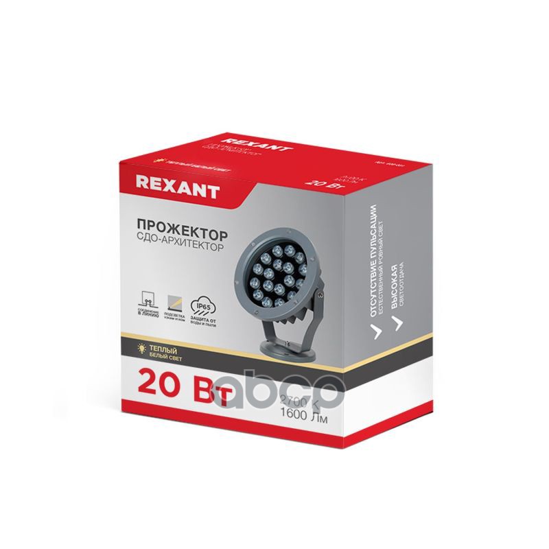 Наименование: REXANT Прожектор АРХИТЕКТОР 20Вт 1600Лм 2700K серый корпус, напряжение 110-240В,