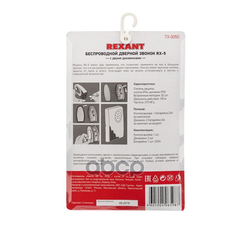 Купить запчасть 730050 REXANT Беспроводной дверной звонок с двумя вызывными панелями кнопка IP 44 RX-5 с доставкой в Эль-Монте.