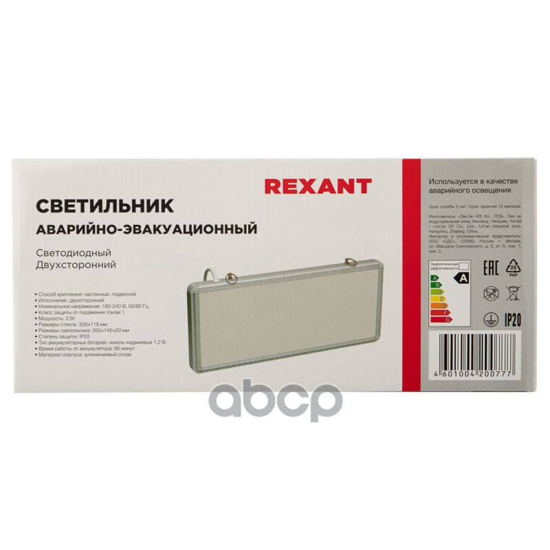 Наименование: Светильник аварийно-эвакуационный светодиодный двухсторонний 1.5 ч, 3 Вт