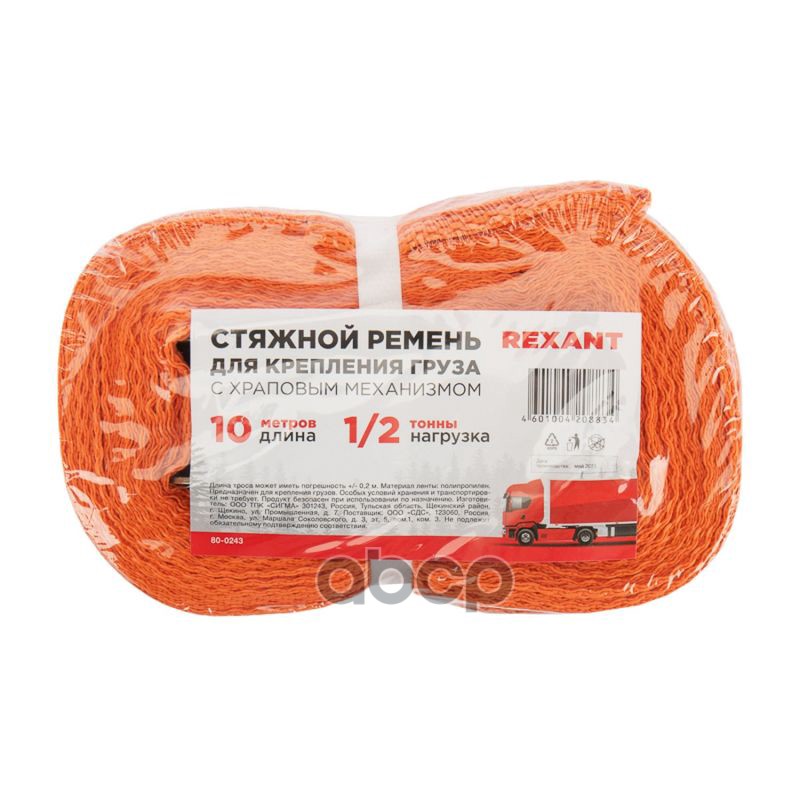 Купить запчасть 800243 REXANT Стяжка для груза багажная с крюками и храповым механизмом 10 м 80-0243 с доставкой в Эль-Монте.