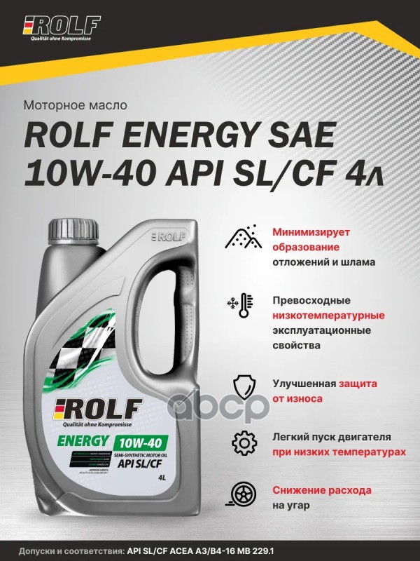 Наименование: Масло Rolf Energy 10/40 SL/CF п/синтетическое пластик 4 л 322425 10W40