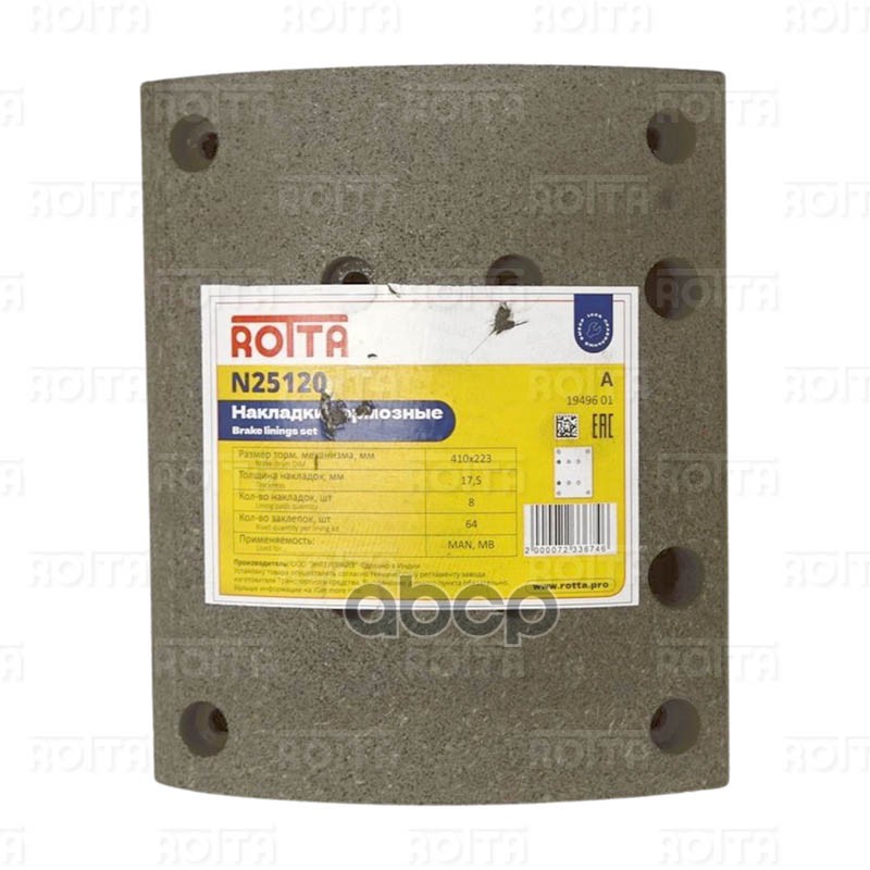 Купить запчасть N25120 Накладки тормозные 19496/19488 1-й ремонт MAN, MB 410х223 (с заклёпками) с доставкой в Эль-Монте.
