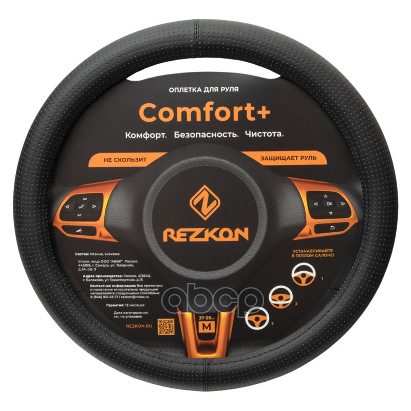 Бренд: Rezkon, артикул: 8003021000, оплетка руля каркасная ''стандарт'' экокожа перфорированная, черная. |