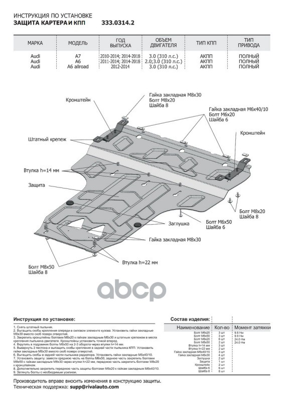 Наименование: Защита картера + КПП (Алюминий) AUDI A6/Allroad/A7 11->
