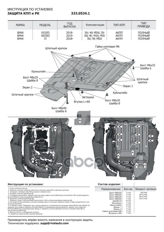 Наименование: Защита КПП + РК (алюминий 3 мм) + комплект крепежа для BMW X6 G06 2019- (комплек