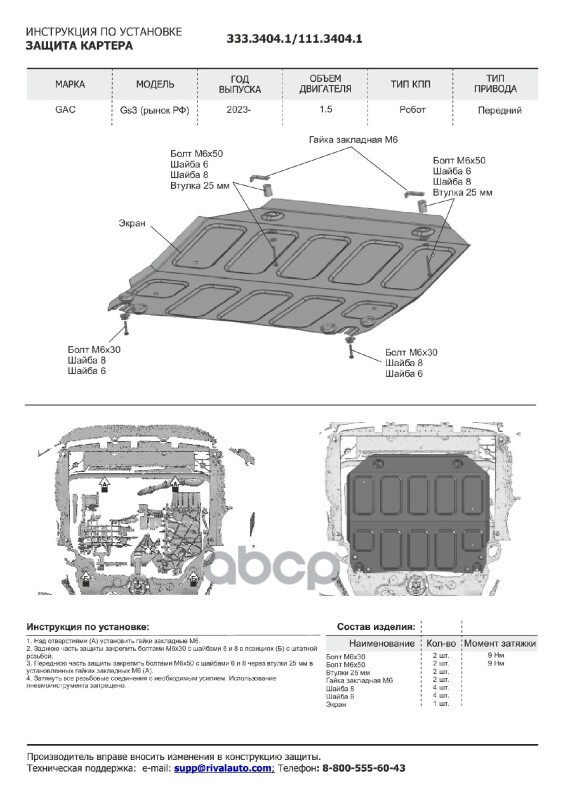 Наименование: ЗАЩИТА КАРТЕРА + КПП GAC GS3 (24-), АЛЮМ