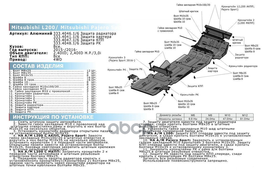 Наименование: Защита редуктора+крепеж L200/PJS,алюмин. 2015,4л.
