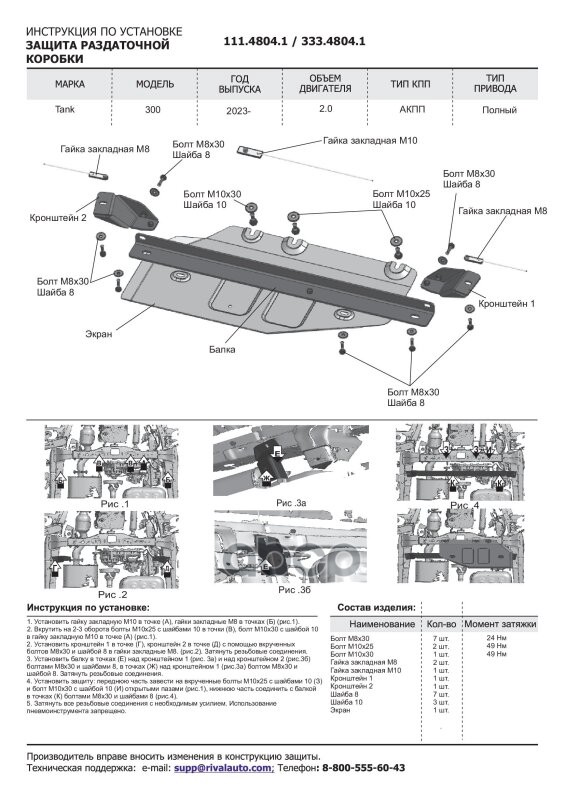 Наименование: Защита РК (алюминий 3 мм) + комплект крепежа для Tank 300 2023- (V - 2.0, АКПП,