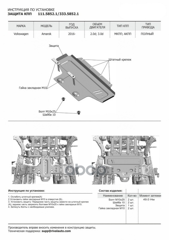 Защита КПП Amarok + комп. креп.(аллюминии)